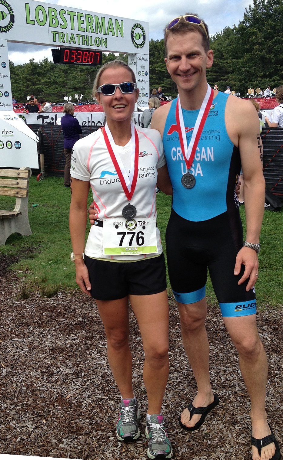What a day to race! 70+ degrees, sunny, dry and light winds. Tri-Maine’s Lobsterman Triathlon in Freeport, Maine is always a super fun race organized in the best possible way. Sean C. raced the 1.5 KM Swim + 26 mile bike ride, and tagged-off the chip in transition to Laura who ran the 10K. It had been many years since racing in this event – it was so nice to see the evolution of the race and to support a Maine local race. We placed 8th in the MIxed (male/female) race cat. and had fun just doing something we love.